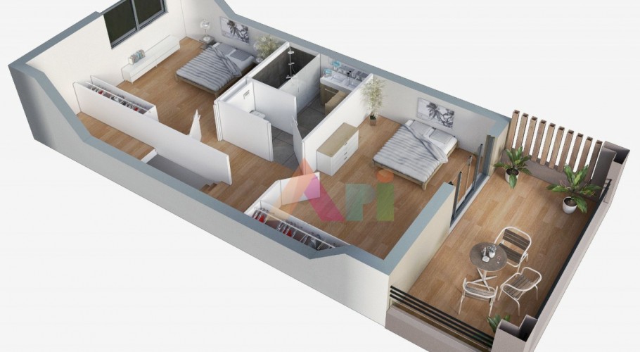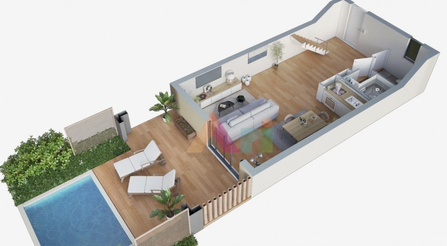 -Terrasses : 24 m² + jardin privatif (37 à 96 m²) avec piscine individuelle
